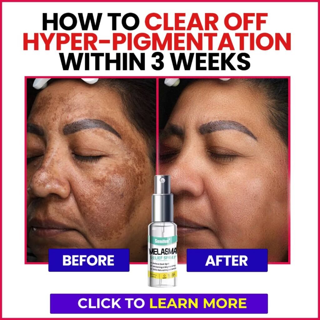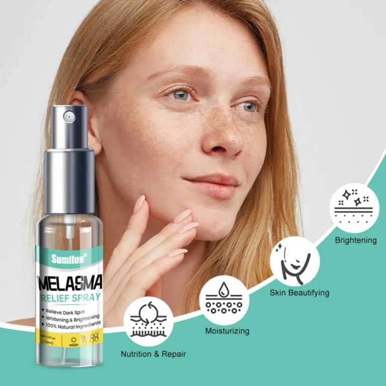 A groundbreaking skin care solution that addresses a range of common skin conditions. This innovative product target key areas around the skin, providing relief from melasma, sun burnt skin, hyper pigmentation, tanning, redness of the skin, dark spot, itching caused by exposure of your skin to sunlight. By repairing & a melasma sun-damaged skin, the Melasma Relief Spray relieve dark patches and skin discomfort after sun exposure by moisturizing hydrating the skin.