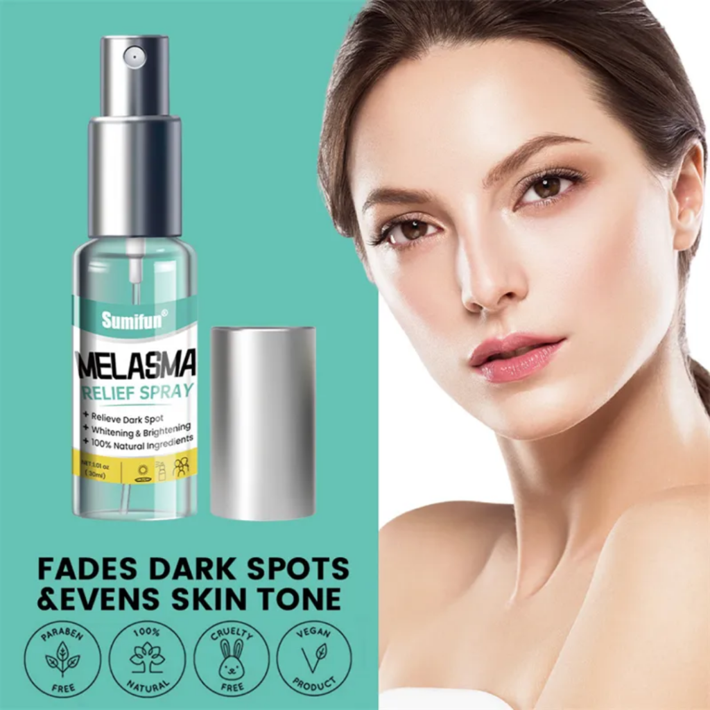 Introducing the Melasma Relief Spray, your ultimate companion to combat melasma, sunburn, skin pigmentation, and sun damaged skin. Our cutting-edge spray is specially crafted to provide the perfect solution for melasma and sun-damaged skin.